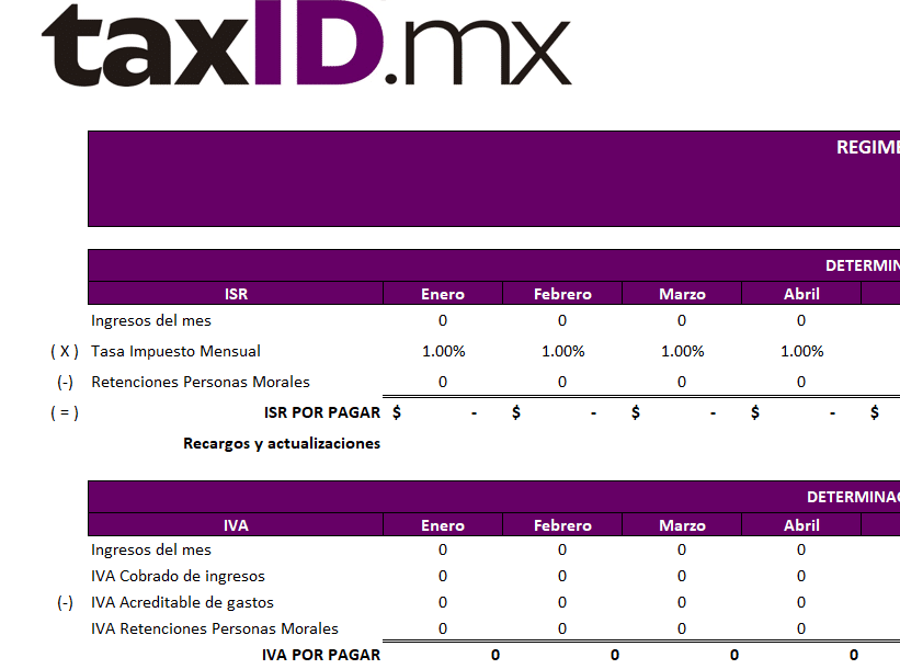 Papel de trabajo para el cálculo de ISR RESICO