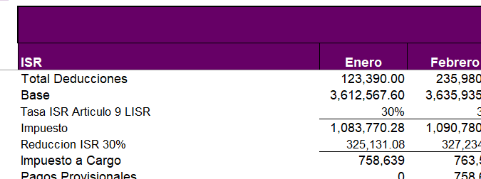 - Cálculo de acuerdo a la regla 3.8.1 de la RMF: